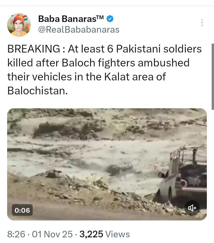 Indian news channel News X uses a four-year-old video to claim the recent incident in Kalat, Balochistan. The news started with the claim that BLA rebels attacked Pakistani Security forces in Kalat on 1st October 2025 and resulting in the loss of a few soldiers' lives, including two SSG Commanders. Later, social media was flooded with the same video to prove this incident. Famous Indian X handle Baba Banaras also shared the same video to create more panic among people.
